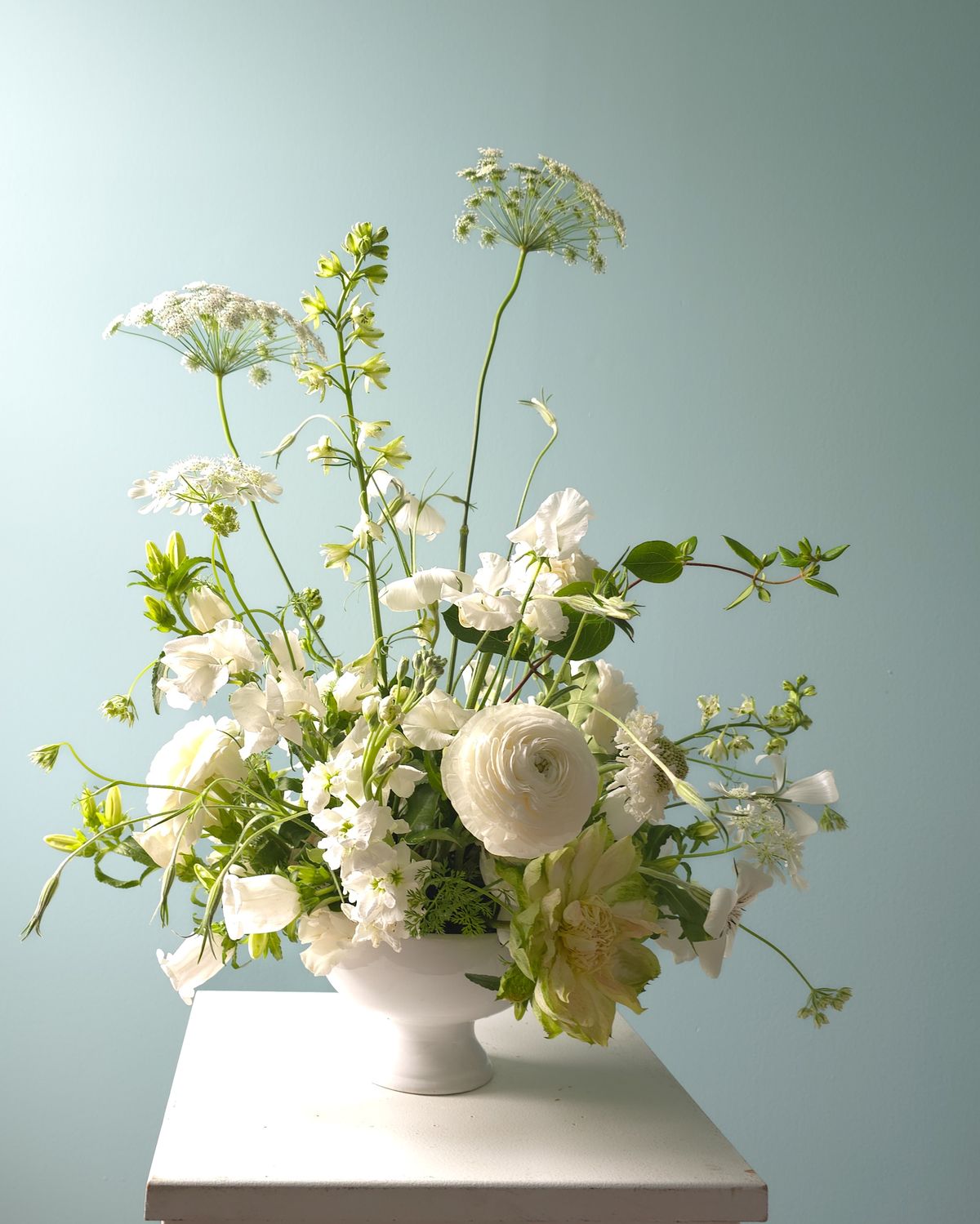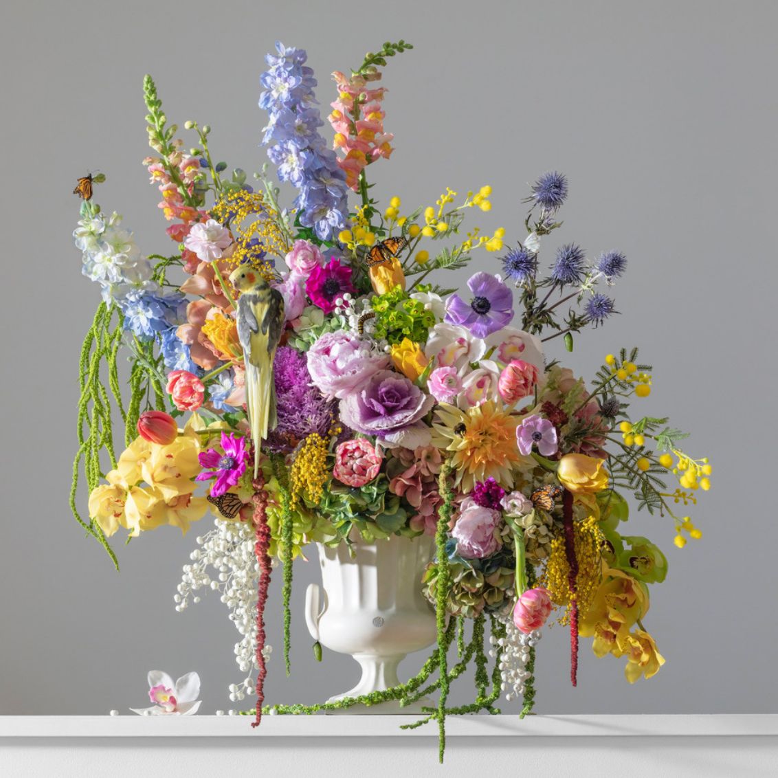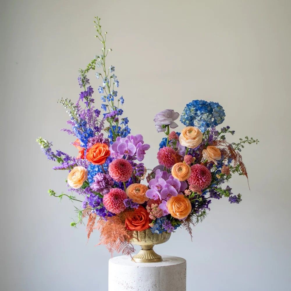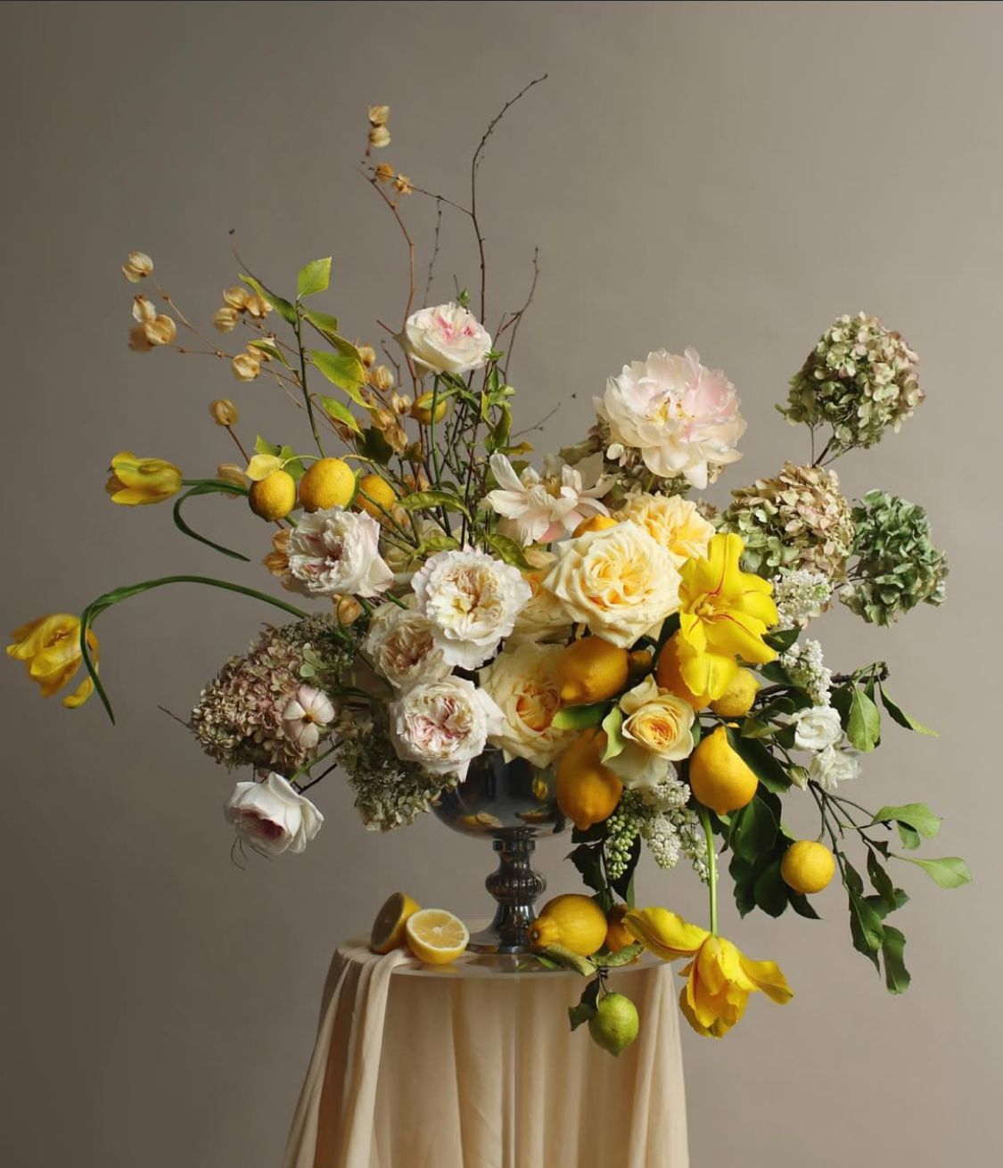 How to use it: Think beyond the vase. Use floral foam cages, grids, or armatures to build strong shapes. Keep color palettes tight so form becomes the focal point.