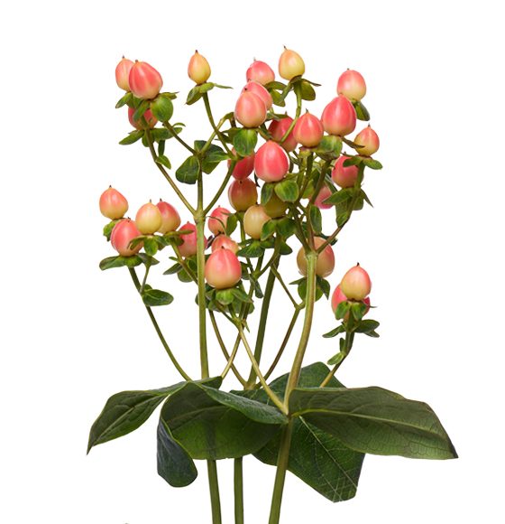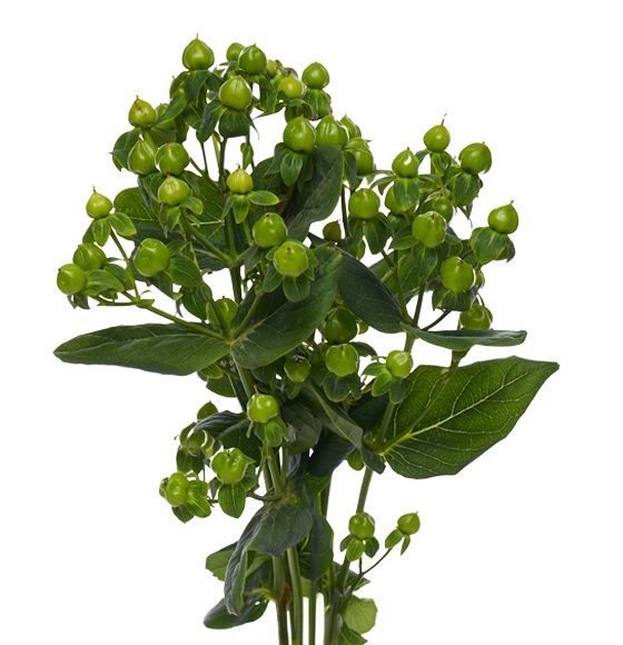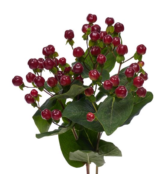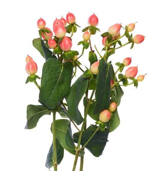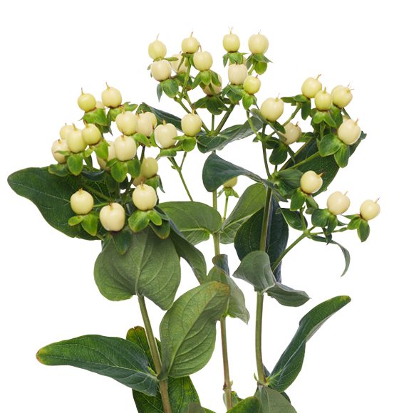 The hypericum flower has traditionally been associated with inspiration and cheerfulness. The colors of its berries range from the usual green and red all the way to ivory, pink, peach, orange, burgundy, and black, allowing it to complement all sorts of flowers, especially during the fall and winter holidays.